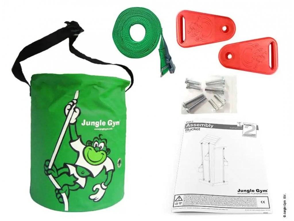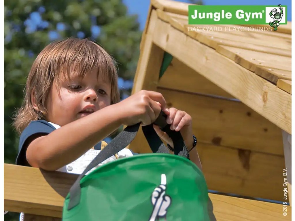 Výtah Bucket Modul pro dětská hřiště Jungle Gym je velice šikovným pomocníkem při dopravování hraček, písku či jiných drobností nahoru do hrací věže, či naopak dolů na zem. Tento doplněk můžete bez váhání pořídit k jakémukoliv typu hracích sestav Jungle Gym.