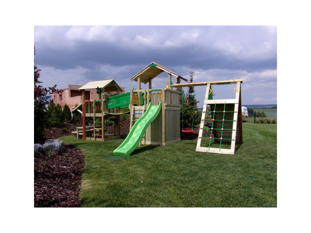 Dětské hřiště můžete dále rozšířit doplňujícími moduly systému Jungle Gym přesně podle Vašich představ. Moduly můžete přidávat postupně, i k již stojícímu hřišti. V nabídce máme vše od houpačkového modulu až po modul s horolezeckou sítí.