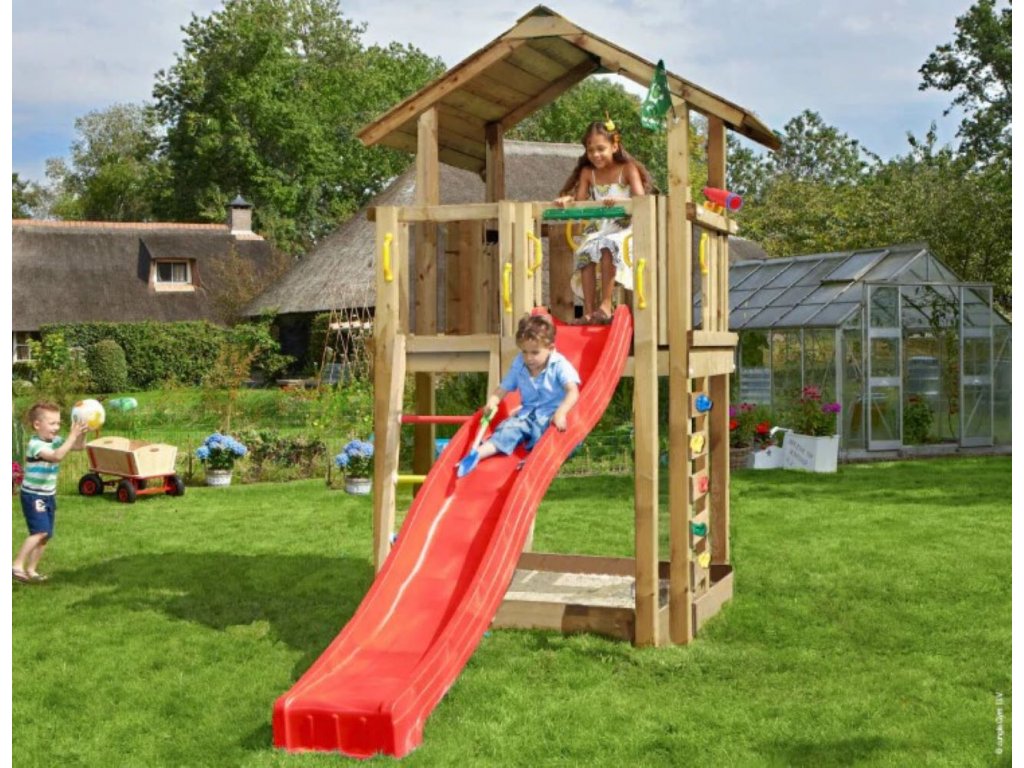Dětské hřiště Chalet je typické pro svojí velkou věž s dřevěnou špičatou střechou. Široká, prostorná horní podesta umožňuje pohodlné připojení skluzavky. Na hřiště se připojuje pouze skluzavka o délce 265 cm s nástupní výškou 1,45 m. Barva skluzavky je na Vašem individuálním výběru - nabízíme žlutou, modrou, červenou, fialovou a dva odstíny zelené. Barvu si prosím vyberte v kolonce varianta.