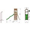 Kompletní sestava obsahuje montážní kit, nakrácené impregnované dřevo pro dřevěnou konstrukci hřiště a skluzavku.