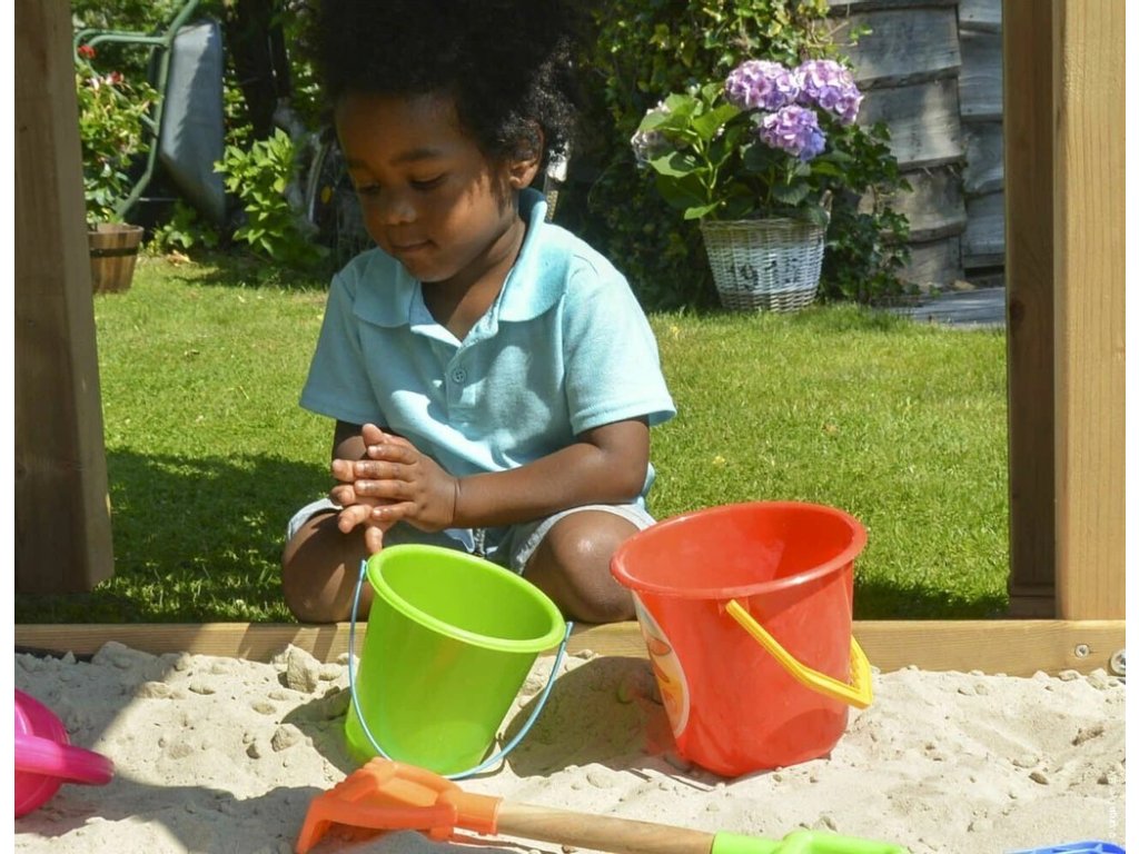 Ve spodní části hrací věže se nachází dětské pískoviště, které je proti kočkám standardně chráněno krycí sítí Cat Stop. Pokud byste měli zájem o pevný dřevěný kryt, na vyžádání můžeme dodat materiál na jeho smontování.