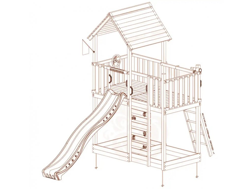 Celodřevěné hřiště sestávající ze dvou věží. Nástup na věž je po žebříku nebo po šplhací stěně. Součástí je žlutý plastový volant Steering Wheel a plastový dalekohled se kterým lze zažít spoustu zábavy.