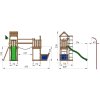 Dětské hřiště Jungle Voyager a jeho nevšední kompozice, vyrobené tak, aby vyhovovalo všem nápadům dětské fantazie, je skvělou volbou pro Vaši zahradu. Konstrukce, připomínající svým tvarem námořní loď, vyzývá každého malého dobrodruha k plavbám přes oceán. Hřiště ve své základní výbavě obsahuje provazový žebřík, pískoviště, skluzavku s přípojkou na zahradní hadici, dřevěný můstek a naklopený žebřík.