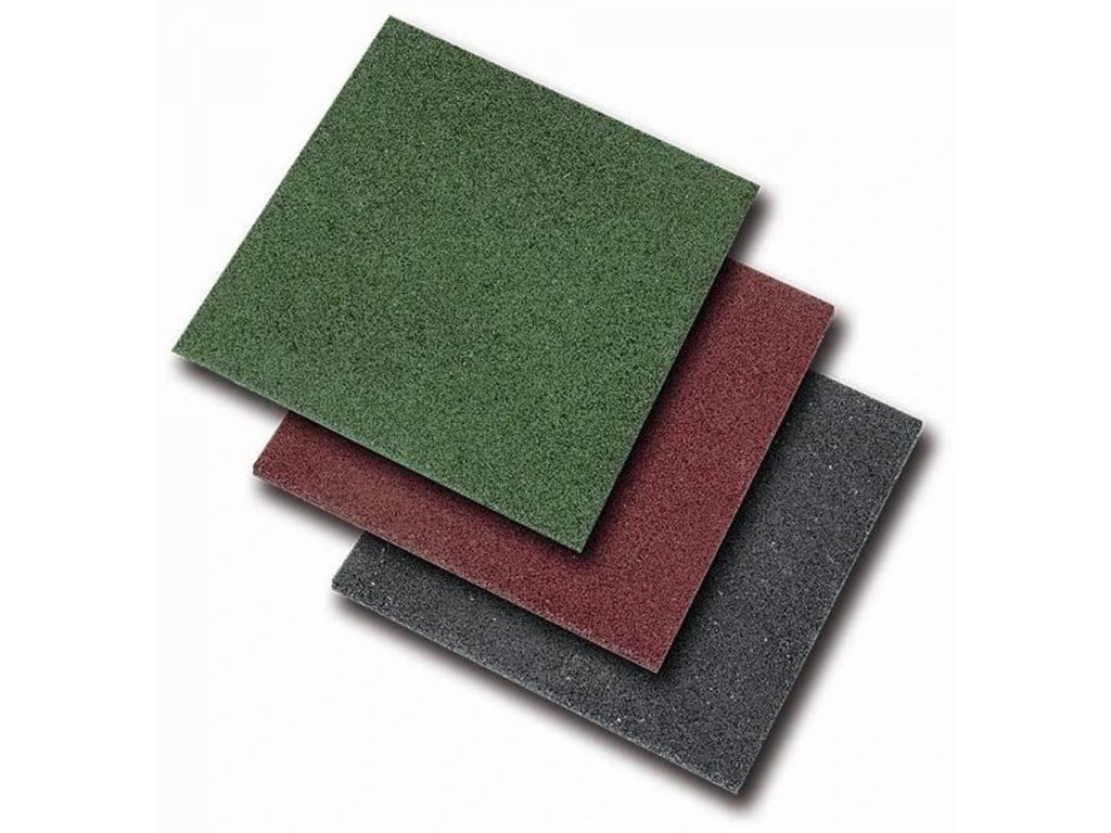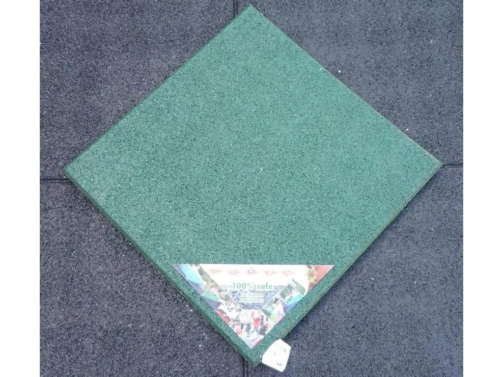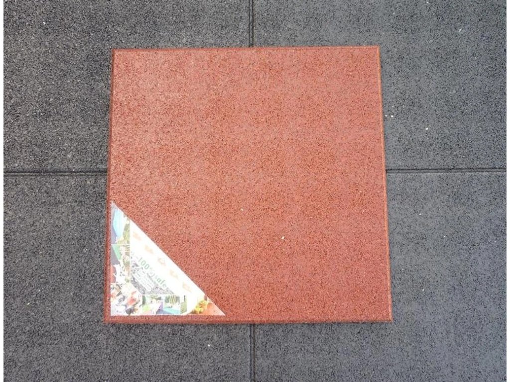 Pryžová dlaždice o rozměrech 50 x 50 cm a výšce 2,5cm.
