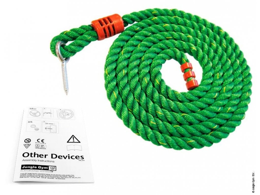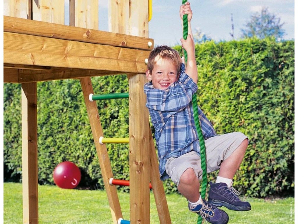 Šplhací lano (Climbing Rope) patří mezi nejoblíbenější doplňky dětských hřišť. 3,5 metru dlouhé lano je vyrobeno z kvalitního materiálu, který zajišťuje bezpečné šplhaní bez zranění a průměr 3cm zaručuje, že je téměř nemožné ho přetrhnout. Climbing Rope se dá připevnit na jakoukoliv dřevěnou konstrukci.